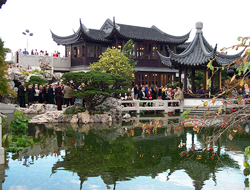 兰苏园位于美国波特兰市唐人街,占地3700平方米,建筑面积835平方米,2000年9月落成开放,由苏州市政府出资营建,是苏州与波特兰两座城市之间的结晶。这是一座典型的苏州园林风格的花园,被誉为镶嵌在世界著名环保城的一颗东方绿宝石。该项目获波特兰政府颁发的“模范安全奖”,波特兰市政府为之授予苏州园林设计院“特别贡献奖”。它的独特之处在于和“网师园”结为了姐妹园,并且之间建立了互访网站,能够通过网络实时看到对方的景点。网师园的技术人员曾前往波特兰进行实地指导与维护,共同进行科研项目的研究。