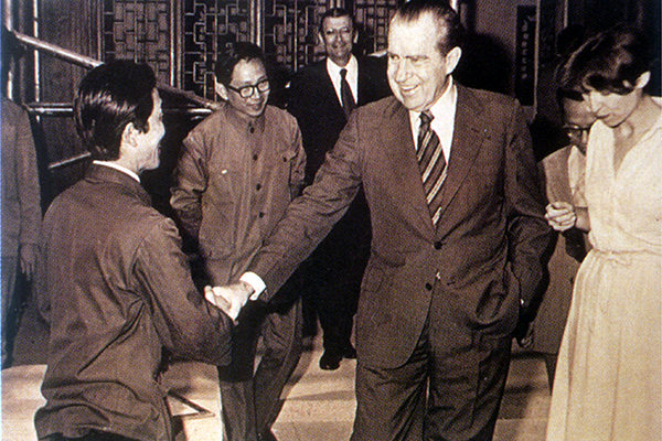 美国前总统尼克松会见在纽约承建“明轩”的中国工程师
